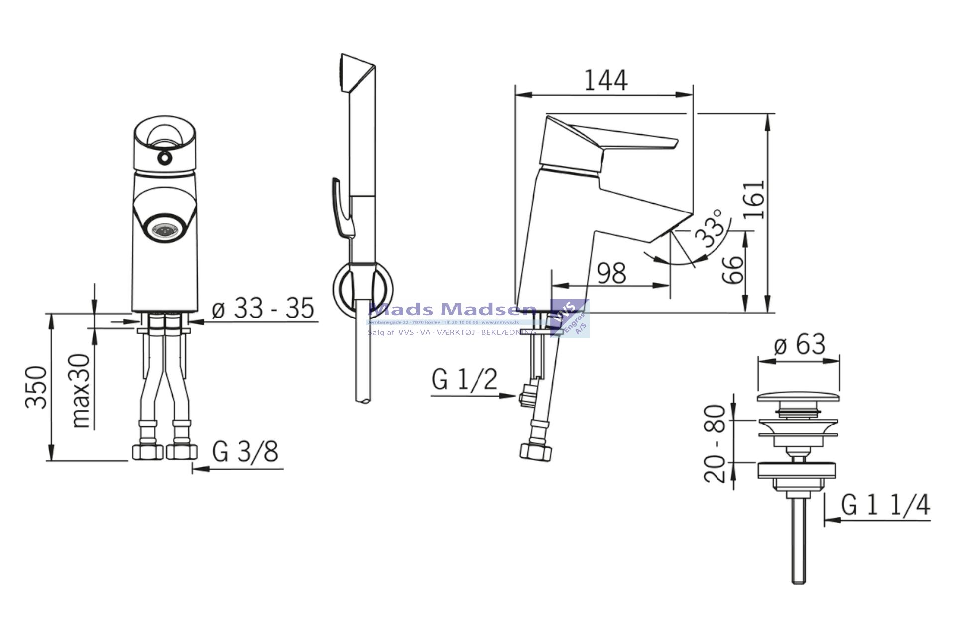 Oras Optima krom hdv.batteri m/push-up bundventil og bruser fremspring 98mm 2702F (S)