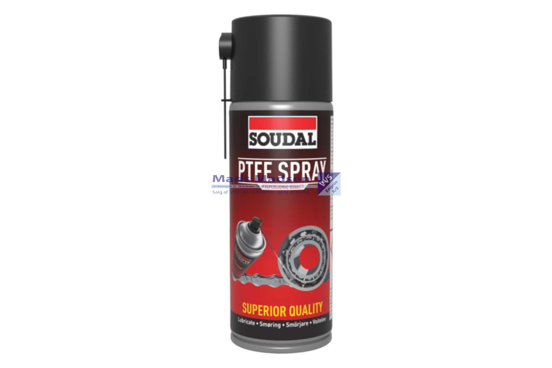 Soudal PTFE spray 400ml. Syrefri smøring UN 1950 – Farekl. 2 – RØD