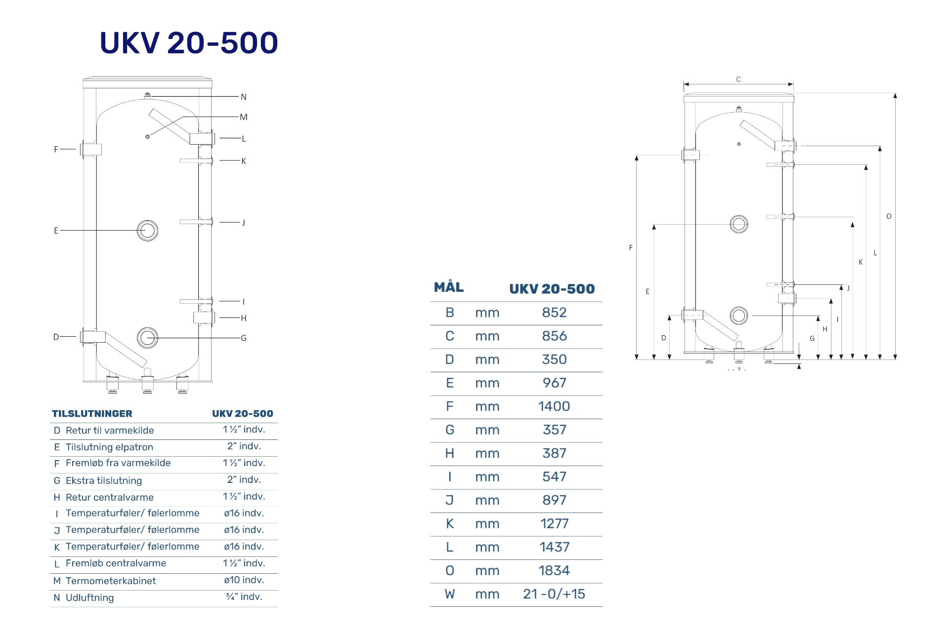 Vølund UKV 20-500 buffebeholder r m/4 x 1 1/2″ indv. studser & 2 x 2″ indv studs til elpatron eller eks. tilslutning 080014