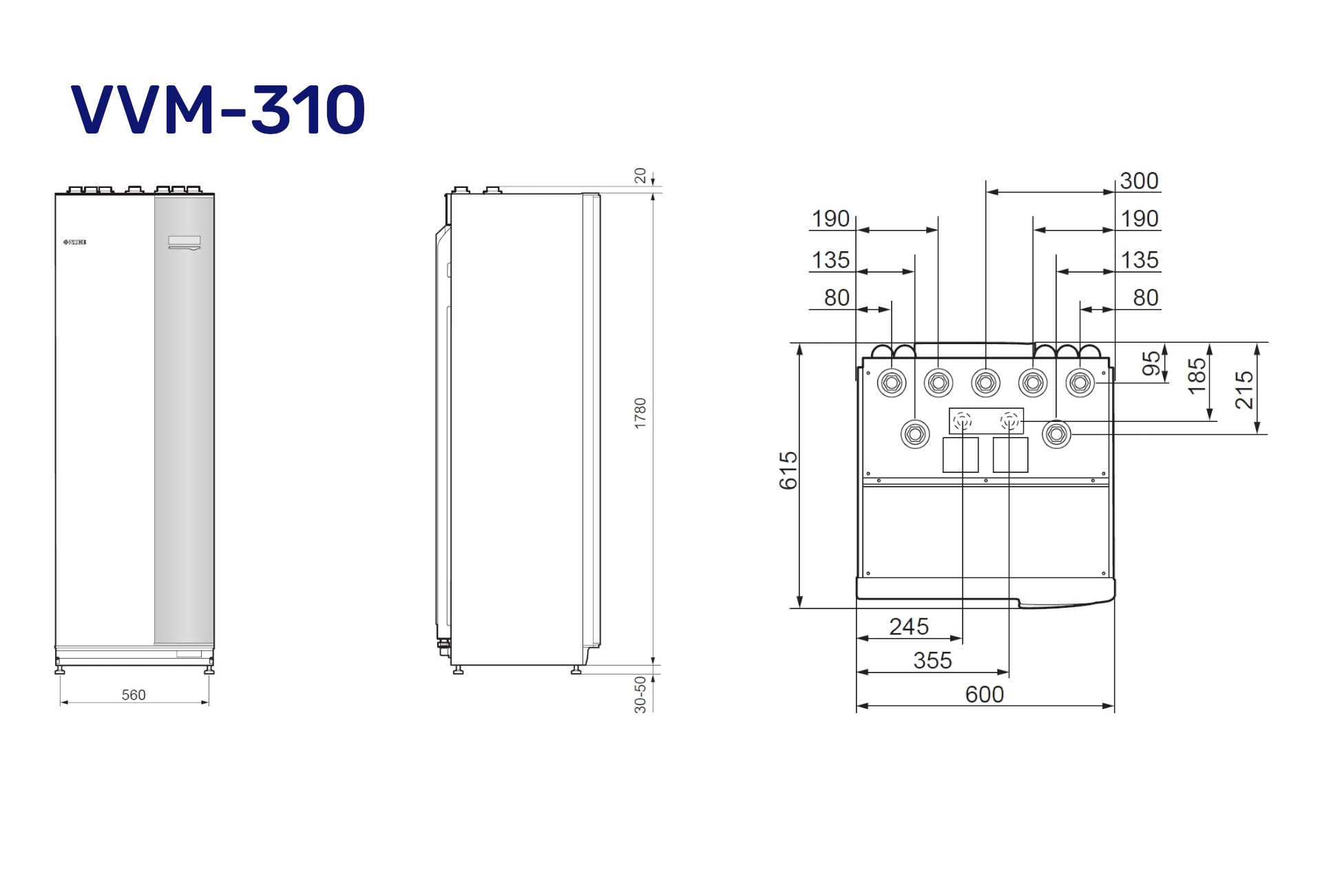 Vølund VVM 310 unik luft/vand indedel m/indbygget brugsvandsspiral (17l/min-max 270ltr 40°) og 50l buffetank (for F2040 & F2120 & S2125 – max 16 kw) (S)